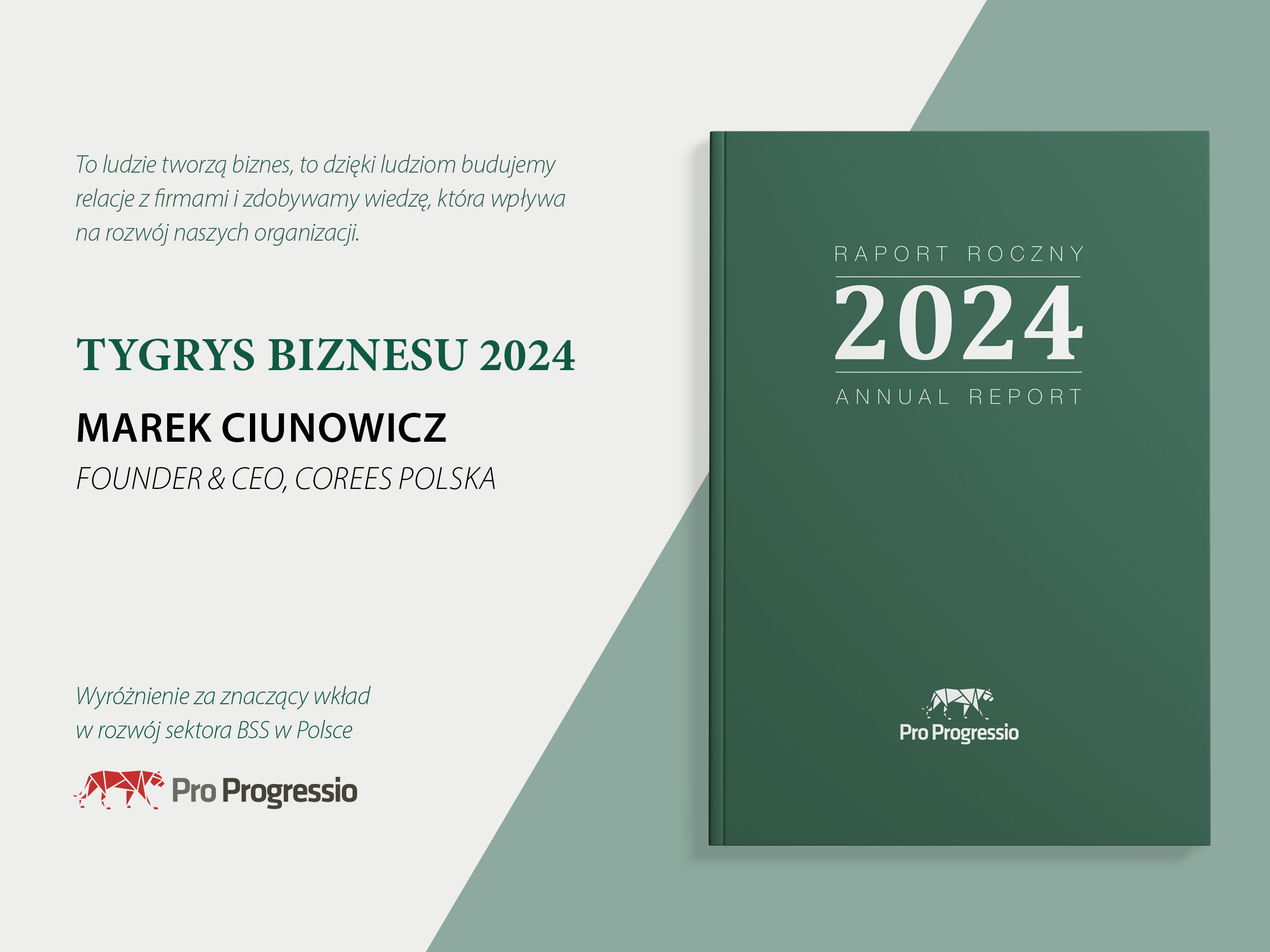 Jest mi niezwykle miło poinformowac, że Marek Ciunowicz, SIOR, Founder&CEO Corees Polska otrzymał wyróżnienie Tygrysa Biznesu 2024.
